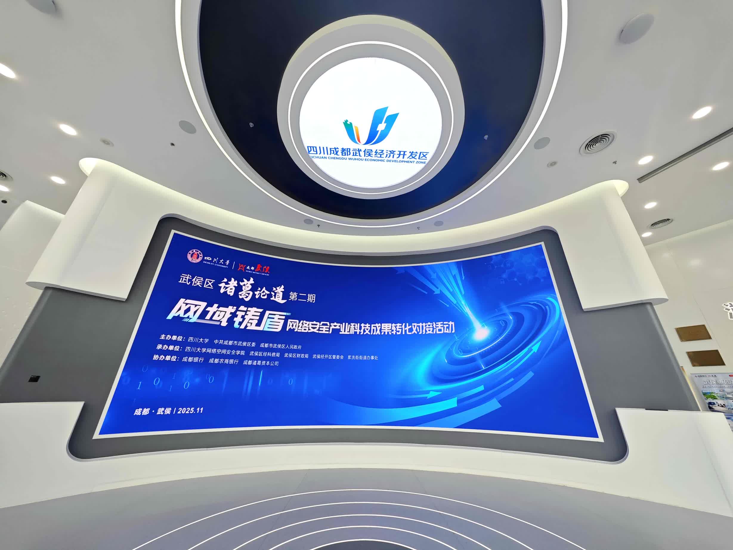 2025年11月6日,武侯区“诸葛论道”第二期——“网域铸盾网络安全产业科技成果转化对接活动”在充满创新活力的悦湖科技城举行。久信股份作为区域网络安全产业代表企业应邀出席,并作企业供需场景分享。