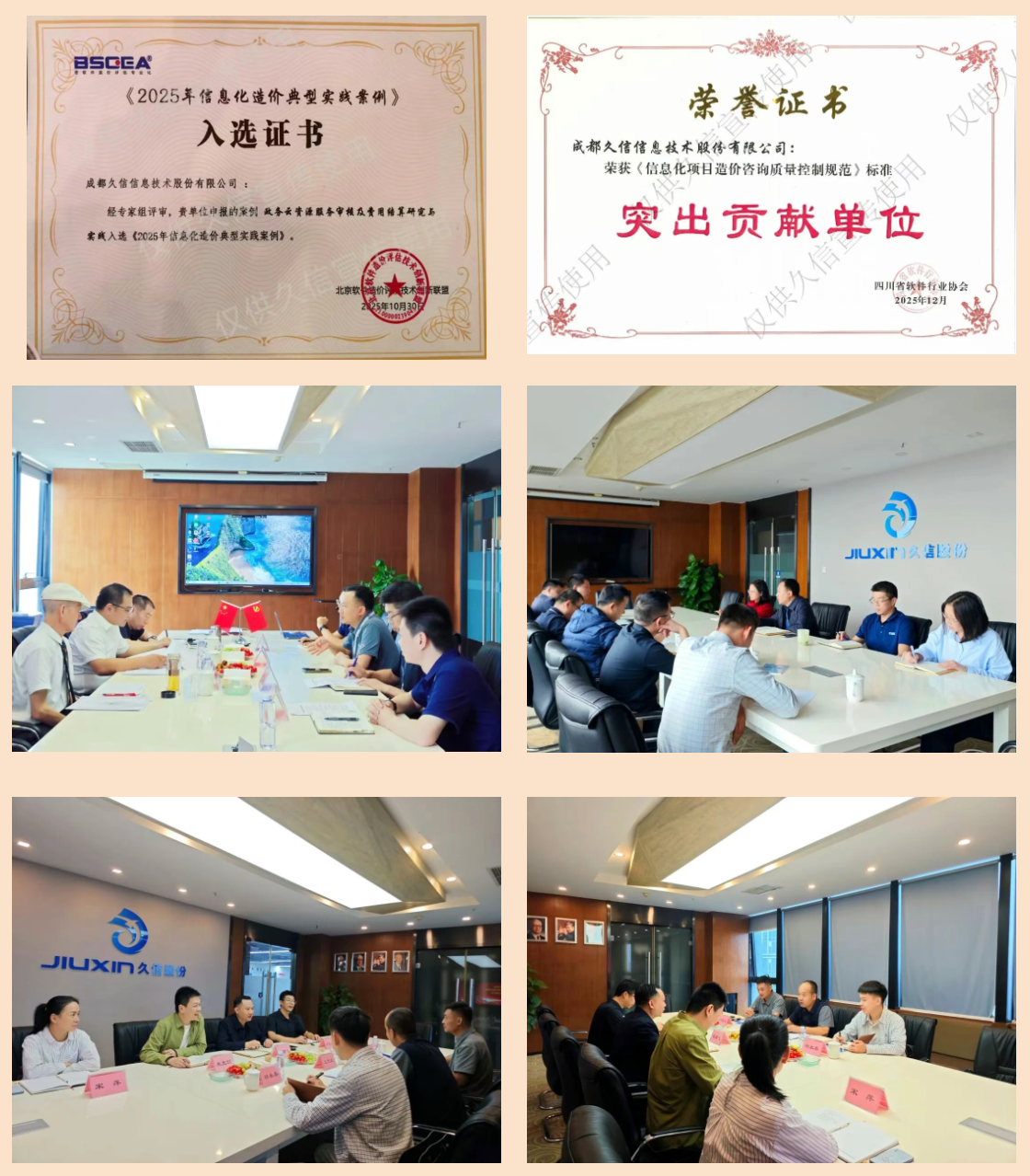 公司成功入选《2025年信息化造价典型实践案例》。该案例经相关联盟组织多轮评审,历时六个月严格遴选,围绕专业性、创新性、成效性、完整性等维度综合评定。不仅如此,久信股份还荣获四川省软件行业协会颁发的“《信息化项目造价咨询质量控制规范》标准突出贡献单位”称号。