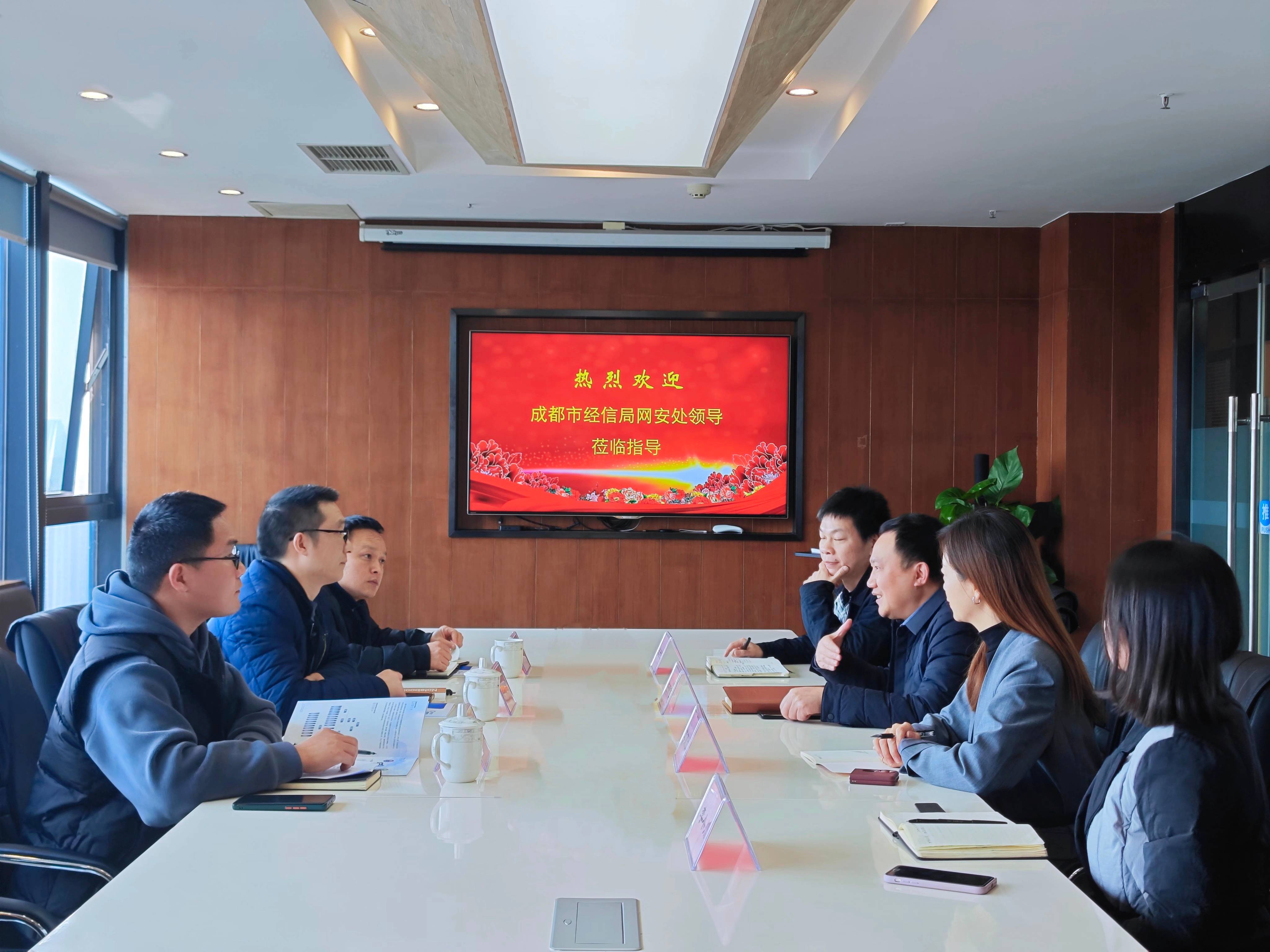 2024年3月7日,成都市经济和信息化局网络信息安全处李松平处长及吴威峰老师、武侯区新经济和科技局信息化推进科冉崇洪科长一行莅临久信股份进行考察调研。此次考察旨在深入了解久信股份的业务发展情况,探讨网络安全行业发展的新机遇与挑战。