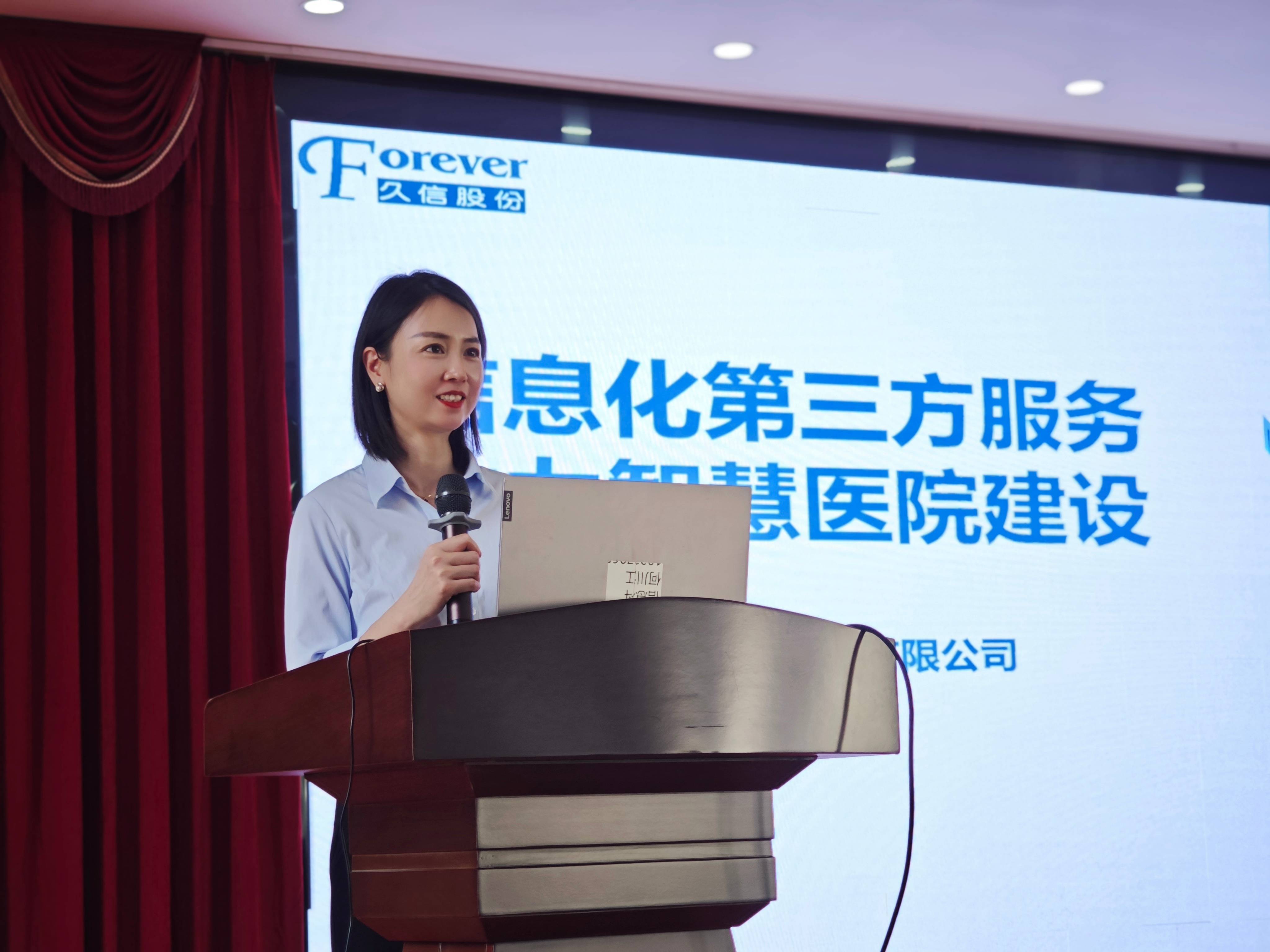 久信股份营销中心区域市场总监王付玉做“信息化第三方服务助力智慧医院建设”经验分享,从省市区政策依据、信息系统工程建立流程、信息系统工程建设现状及风险、信息化第三方服务业务类型、信息化第三方服务价值等多个方面进行经验分享。