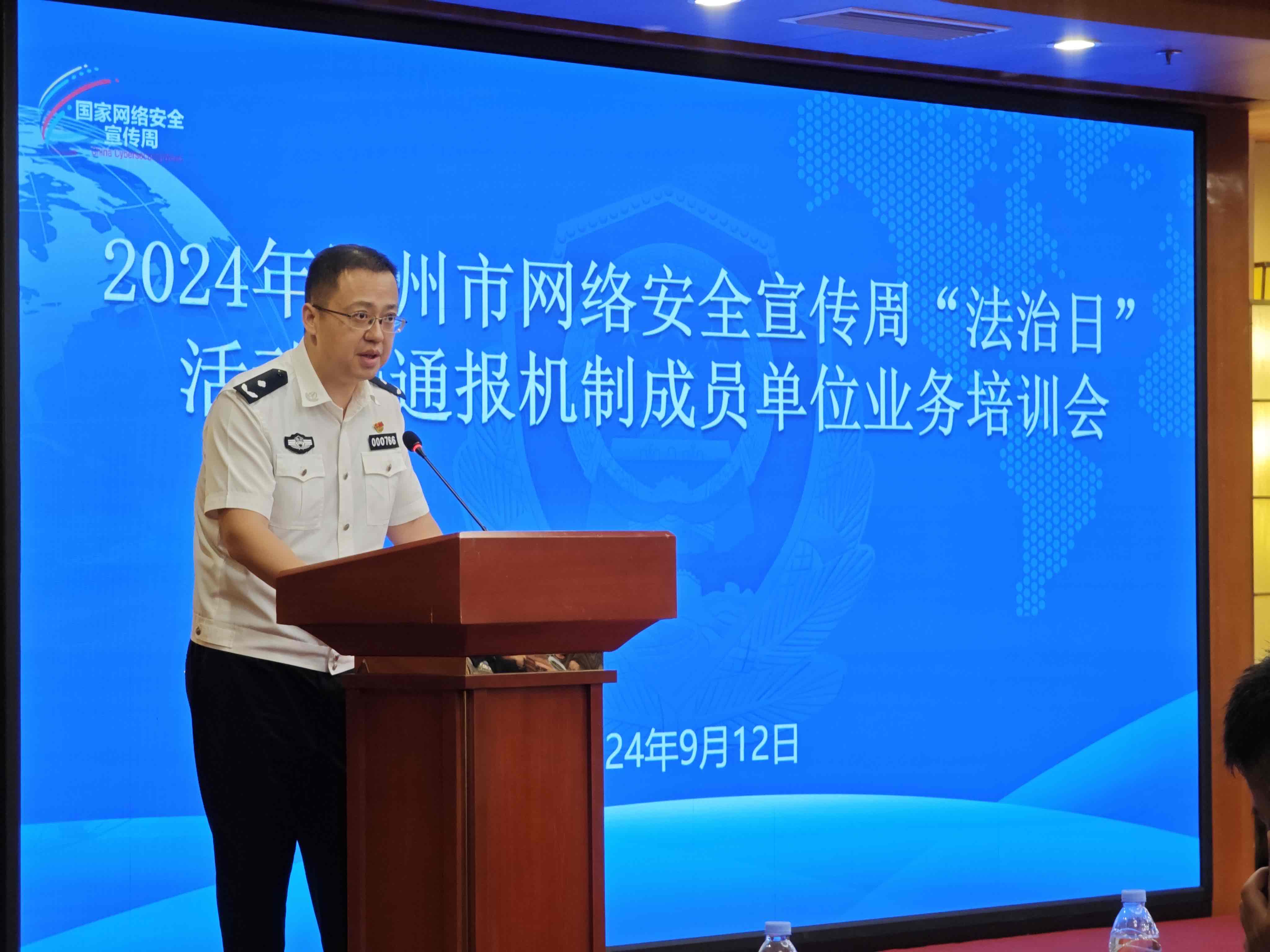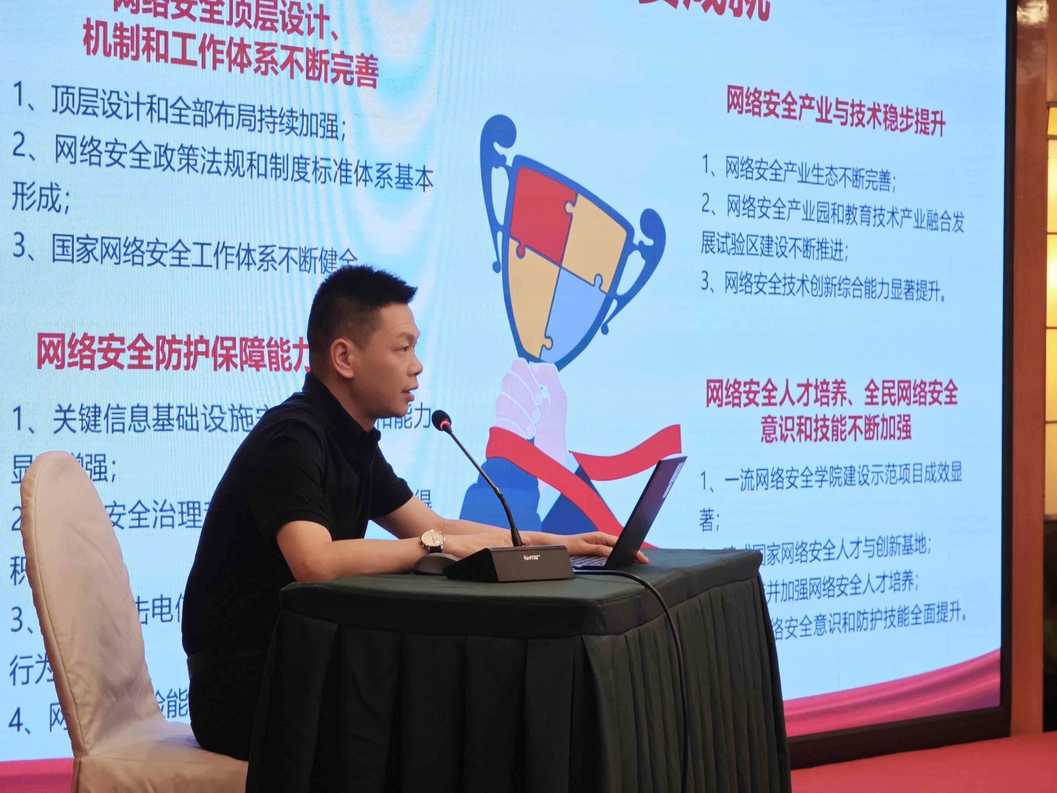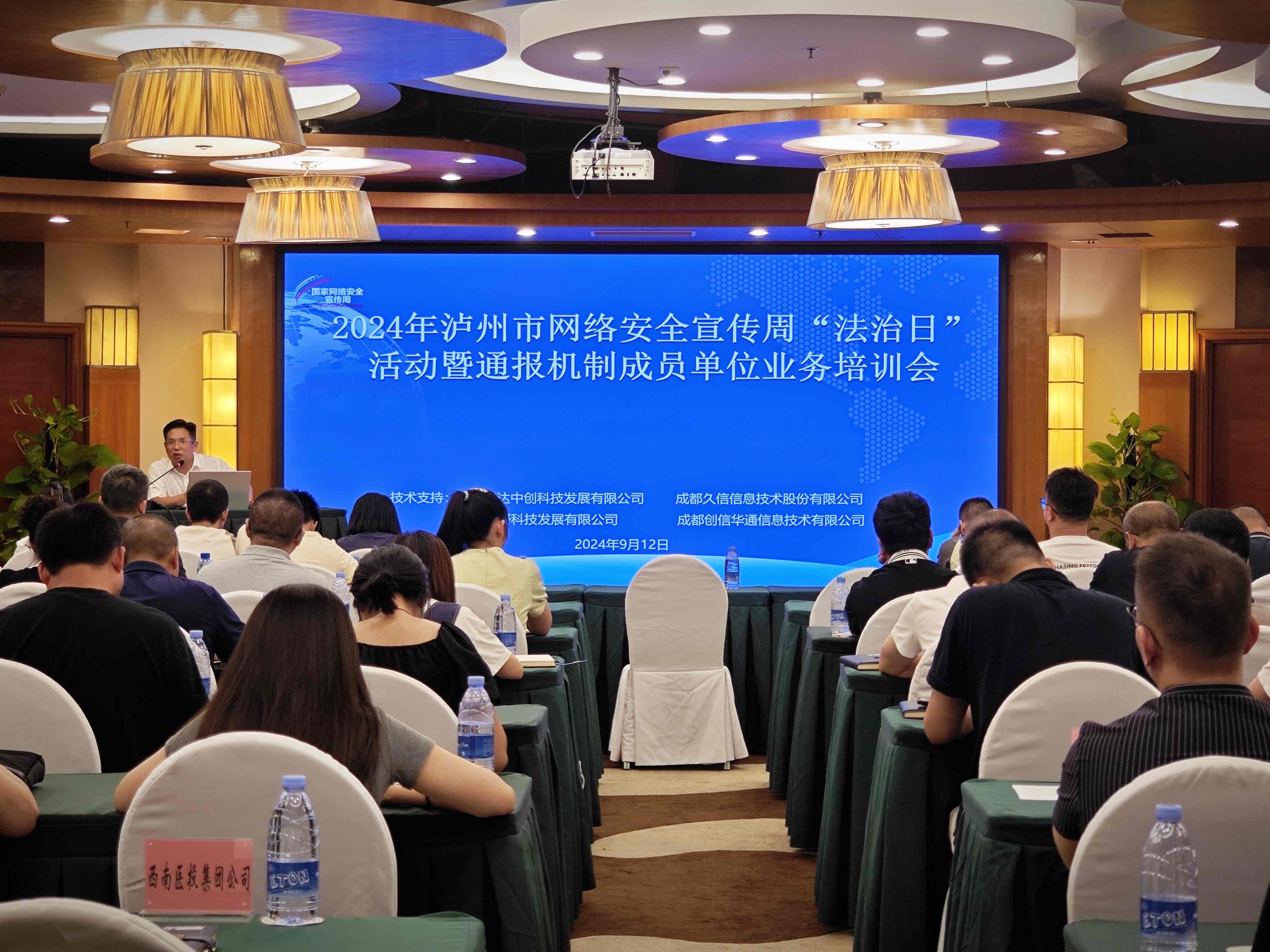 2024年9月12日,2024年泸州市网络安全宣传周“法治日”活动暨通报机制成员单位业务培训会在泸州市伊顿饭店举行,久信股份作为技术支持单位受邀参会并做主题分享。