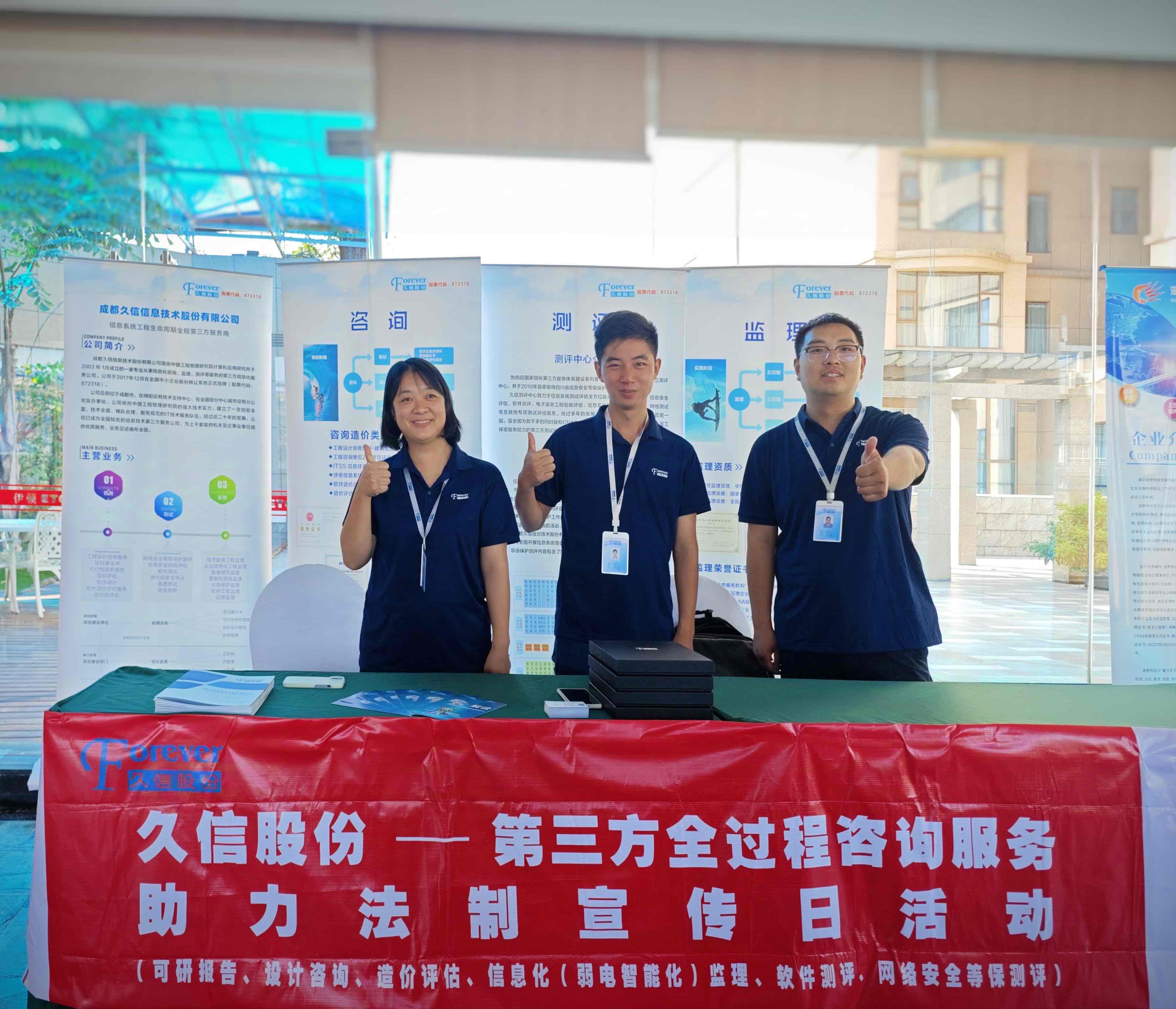 久信股份不仅为各单位信息系统提供专业的网络安全等级保护测评服务,还通过持续的技术创新和服务升级,助力客户构建起更加坚固的网络安全防线。除泸州外,久信股份本周内还前往资阳等多个市州助力网络安全法治宣传日活动。