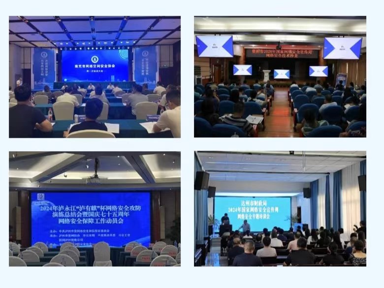 在国家网络安全宣传周期间,公司积极参与南充市网络空间安全协会成立大会的筹备工作、资阳市2024年国家网络安全宣传周网络安全技术沙龙活动、2024年泸永江“泸有麒”杯网络安全攻防演练总结会暨国庆75周年网络安全保障动员会、达州市2024年国家网络安全宣传周网络安全专题培训会。