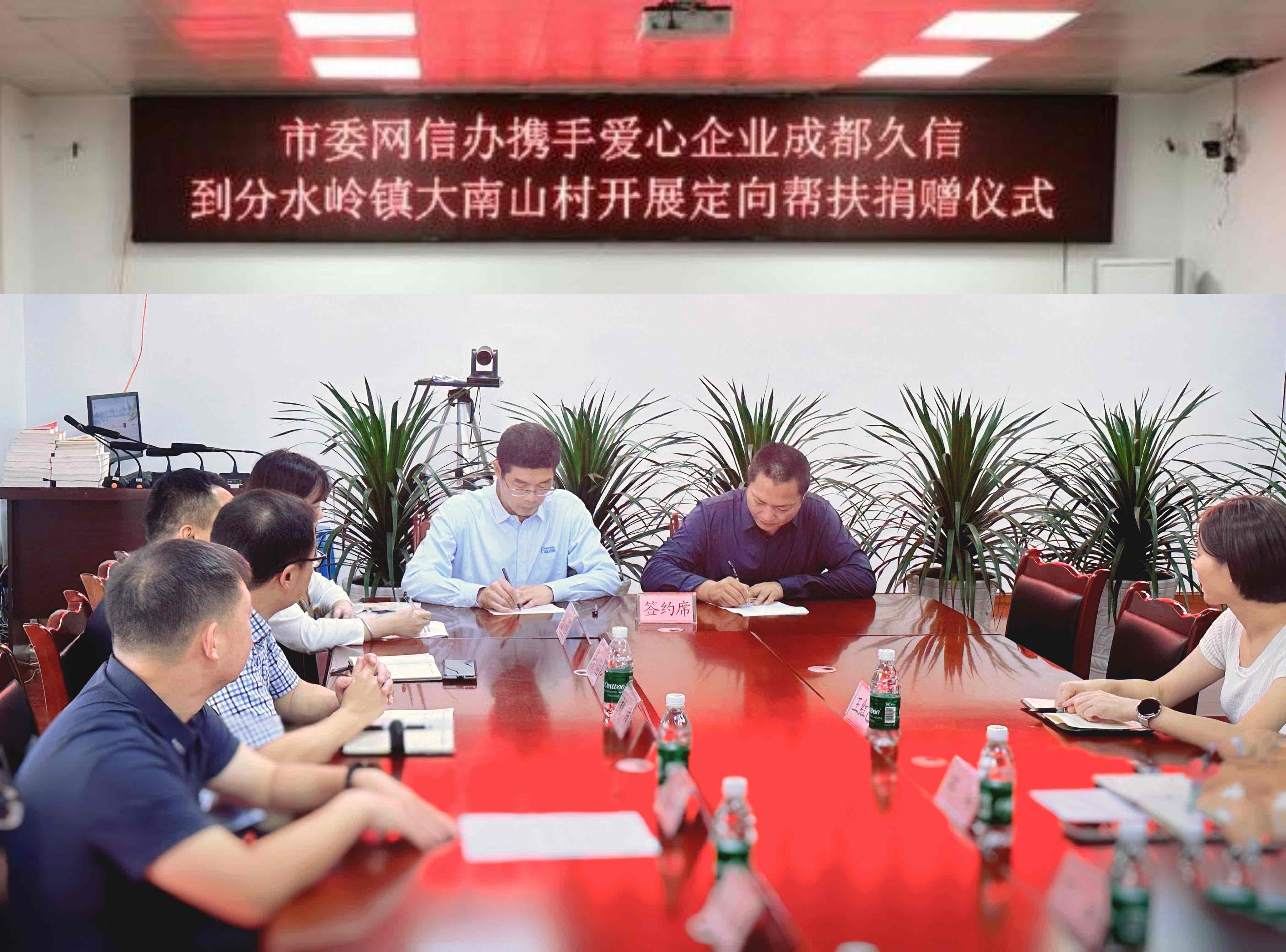 随后,久信股份与江阳区分水岭镇大南山村进行捐赠签约仪式,希望通过一些绵薄之力,助力大南山村建设更加美好的明天。未来,久信股份也会持续深化定点帮扶工作,积极助力乡村振兴建设,携手各界共创繁荣和谐的社会主义新农村!