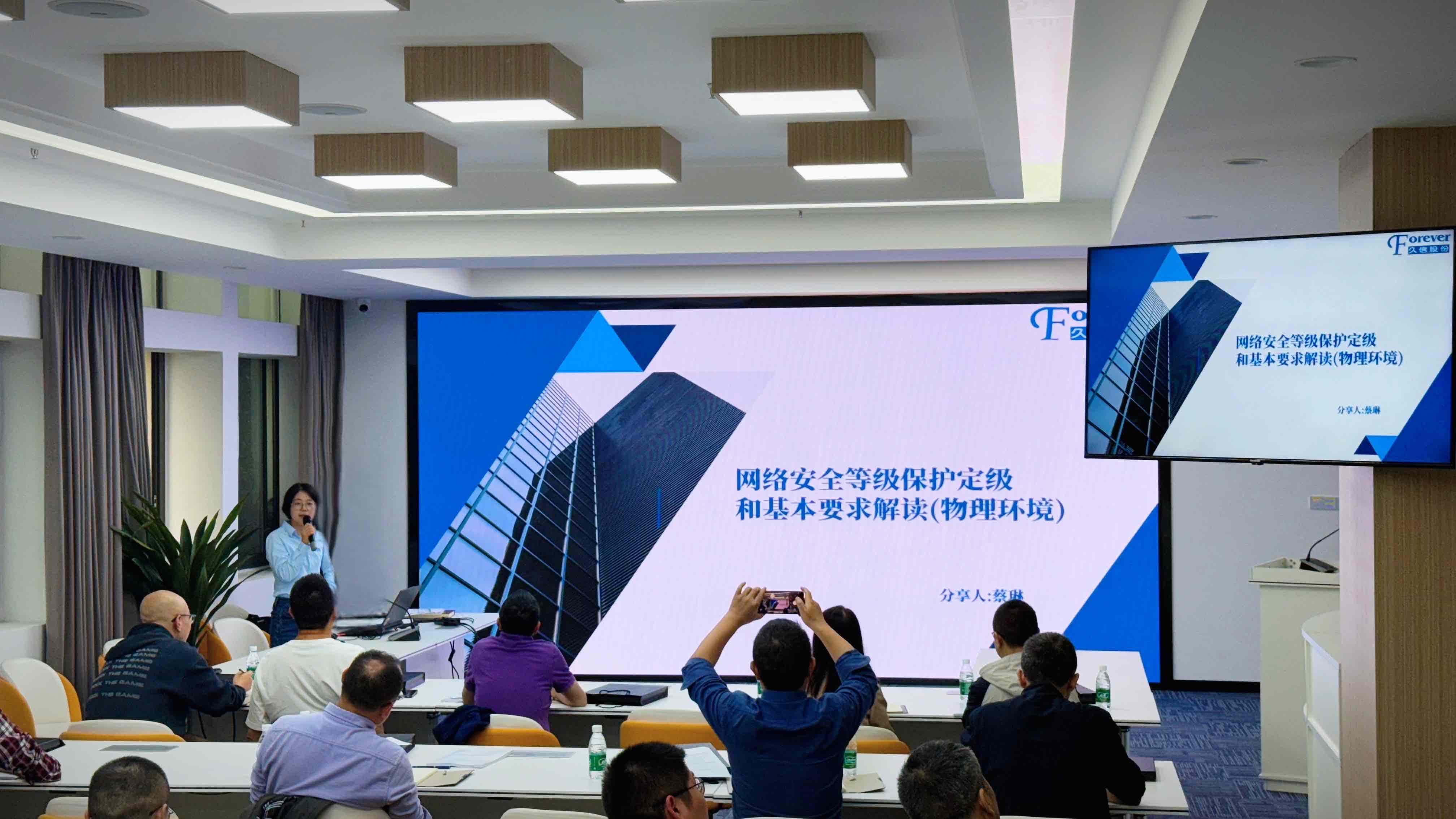 据悉,此次培训会由成都市教育技术装备管理中心主办,旨在通过专业指导和深入交流,全面提升教育专网管理团队的综合能力。久信股份受邀参会并做了“网络安全等级保护定级和基本要求解读(物理环境)”的主题授课分享。
