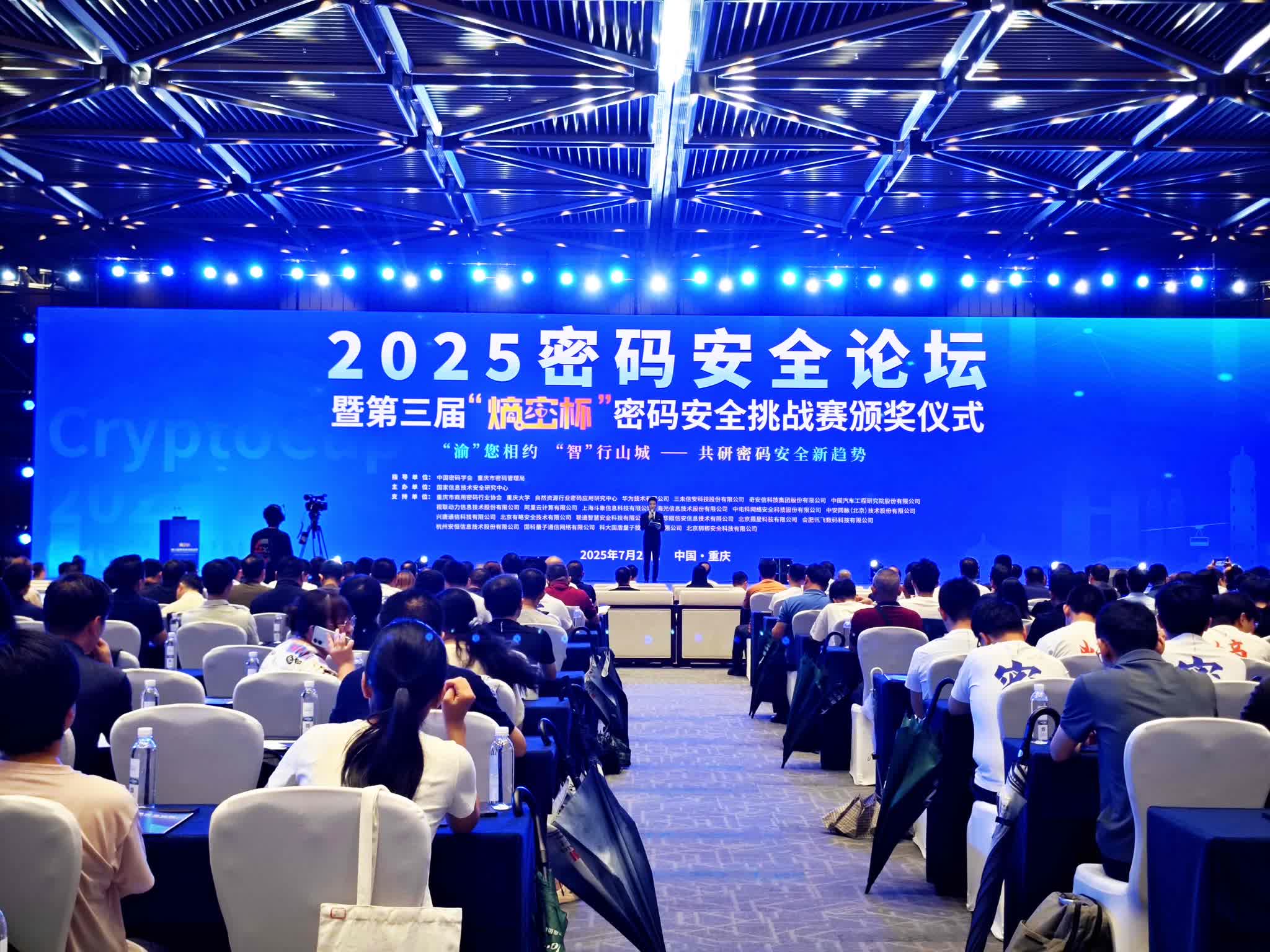 2025年7月19日至20日,第三届“熵密杯”密码安全挑战赛暨2025密码安全论坛于重庆科学会堂成功举办。本届盛会在中国密码学会、重庆市密码管理局指导下,由国家信息技术安全研究中心主办,吸引了来自全国31个省(自治区、直辖市)的205支战队、608名选手同场竞技,其中包括84支密评机构战队和47支相关测评机构战队。