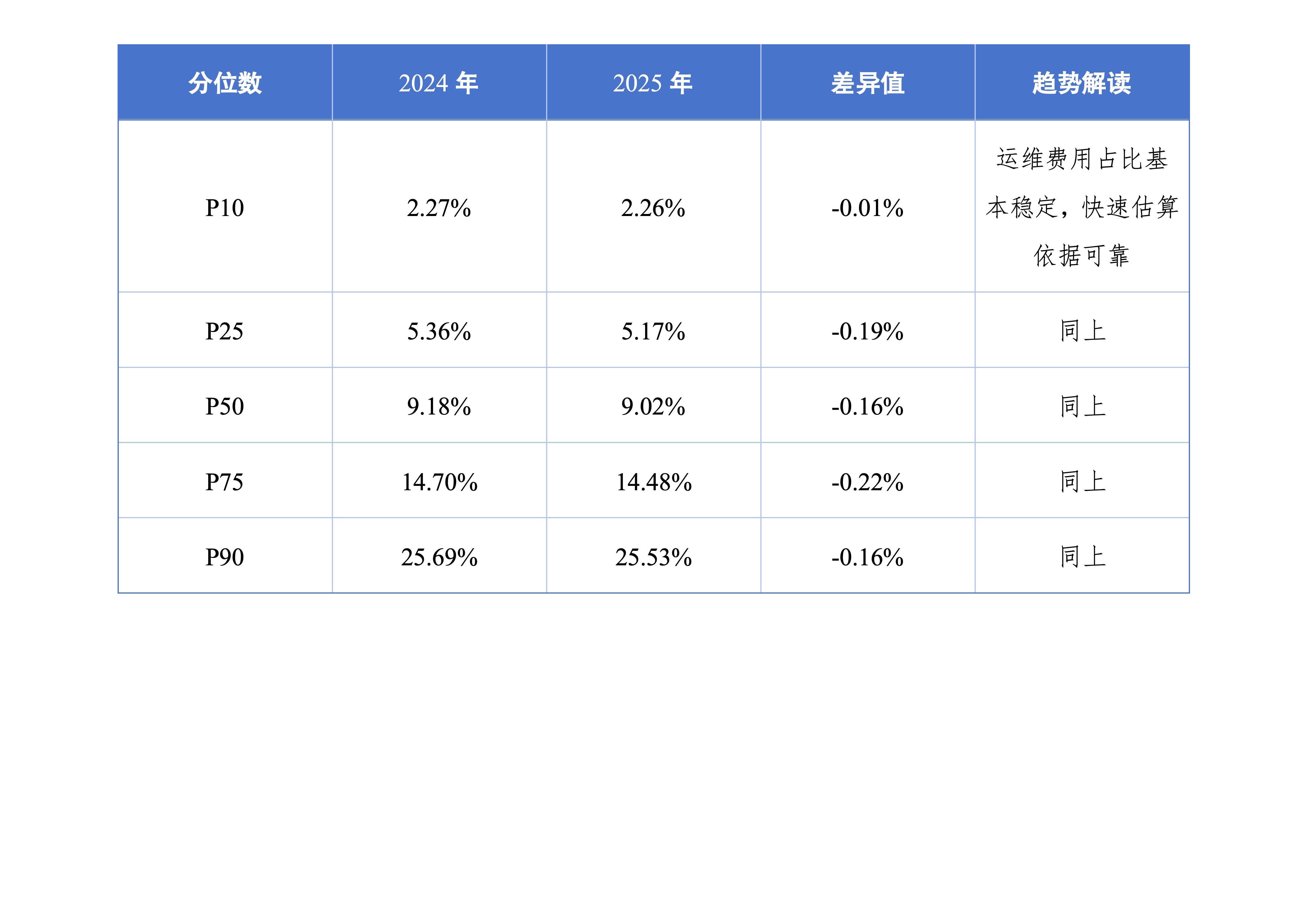 技术应用建议聚焦精准落地:企业应基于细分领域生产率数据(如金融10.46人时/功能点)优化项目排期,加大前期需求调研投入;评估机构需采用新增调整因子完善涉密项目测算,按地区人月费率比例折算功能点单价;监管端可依托9.02%的运维费用占比P50值,规范项目全生命周期成本管控,推动行业从经验化管理向数据化管理深度转型。各数据对比如下: