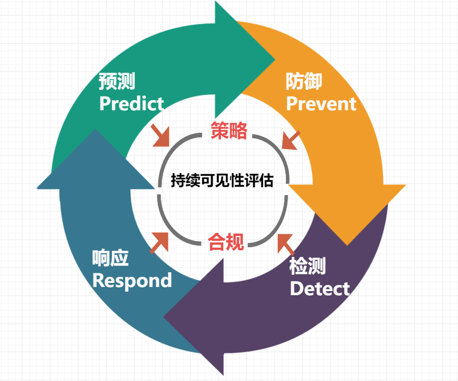ASA自适应安全框架由Gartner2014年提出,是面向下一代的安全体系框架。它从预测、防御、检测、响应四个维度,对安全威胁进行实时、动态的分析。ASA强调安全防护是一个持续处理、循环优化的过程,能够自动适应不断变化的网络和威胁环境,并不断优化自身的安全防御机制。