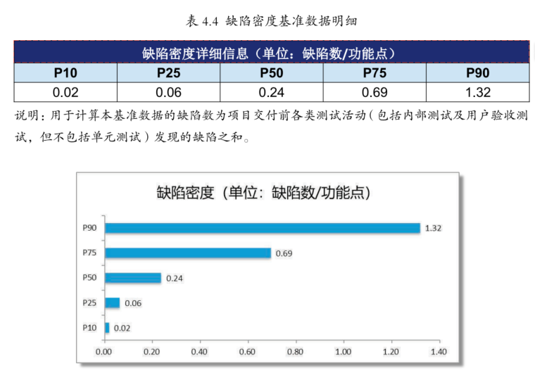 缺陷密度基准数据 P50 从 2023 年的 0.26 缺陷数 / 功能点下降至 0.24 缺陷数 / 功能点。这一数据的降低清晰地表明,在软件开发过程中,软件产品的缺陷数量呈逐年减少态势,有力地证明了软件质量在持续提升。这对于软件开发企业来说,是技术改进和质量管控措施有效性的重要体现,同时也为用户获得更高质量的软件产品提供了保障。