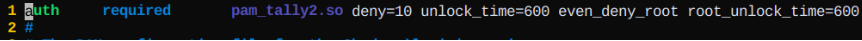auth required pam_tally2.so deny=3 unlock_time=1800 even_deny_root