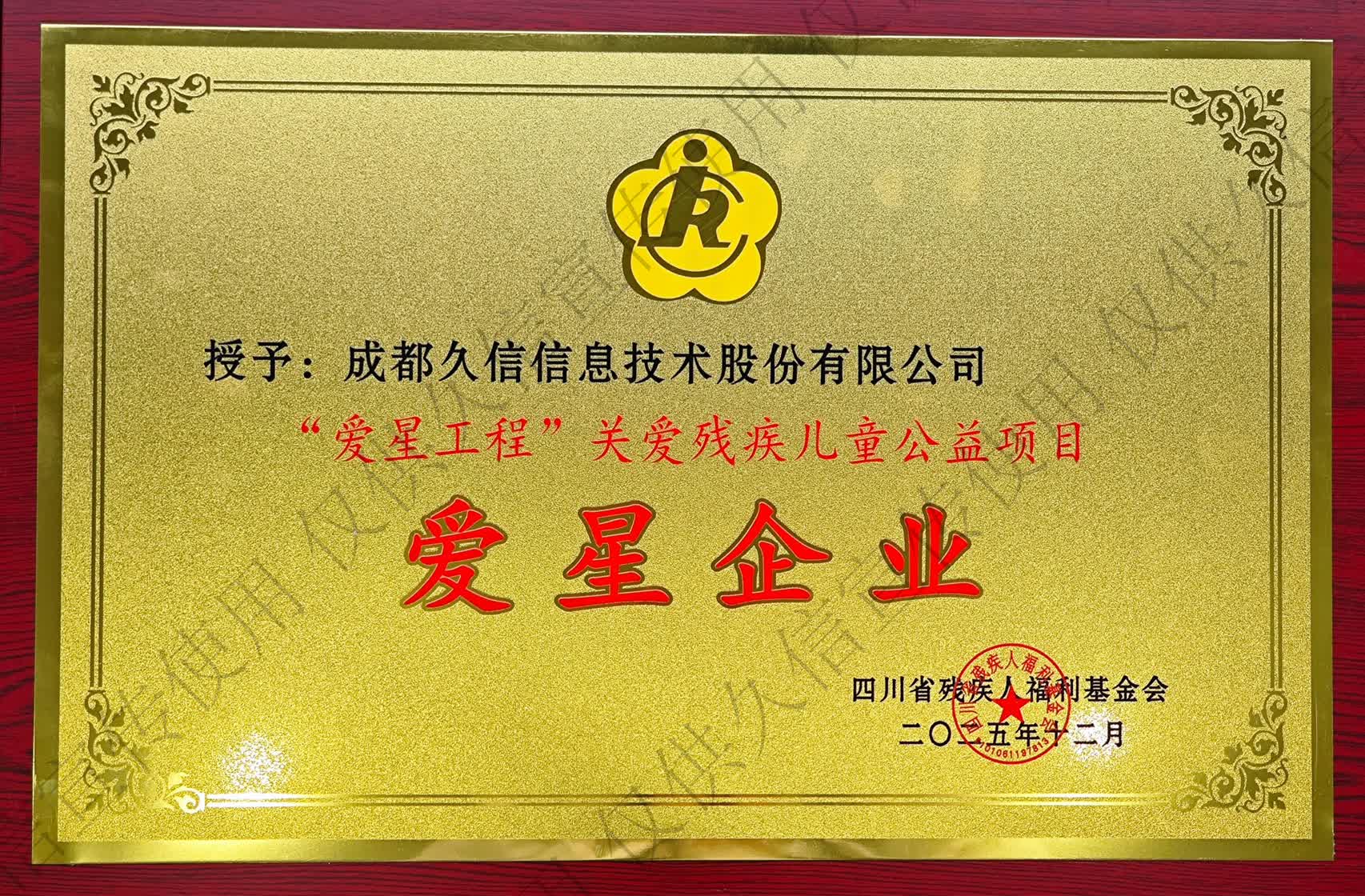 ——久信股份受邀参加四川省残疾人春节联欢晚会,现场获“爱星工程”公益授牌