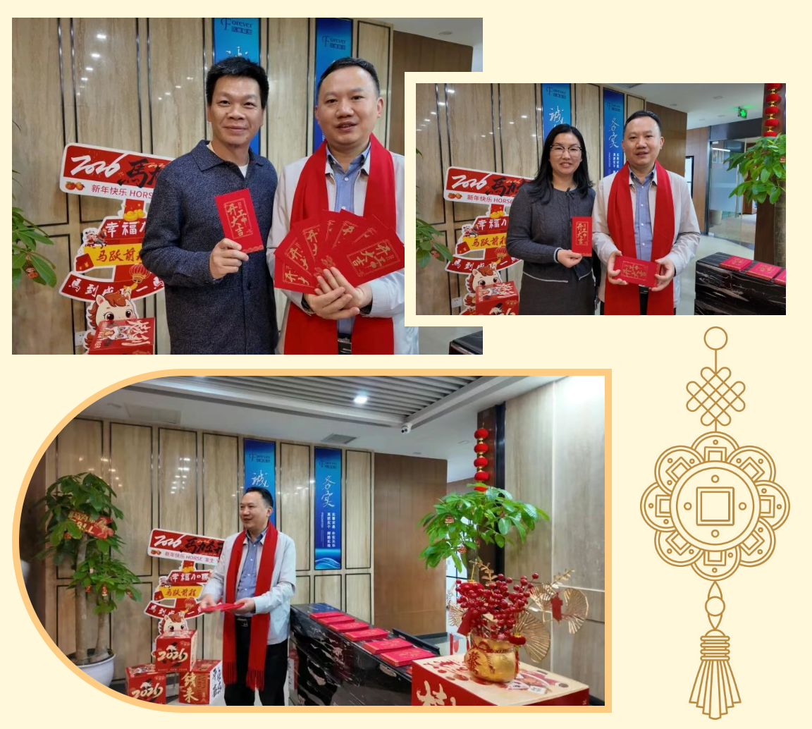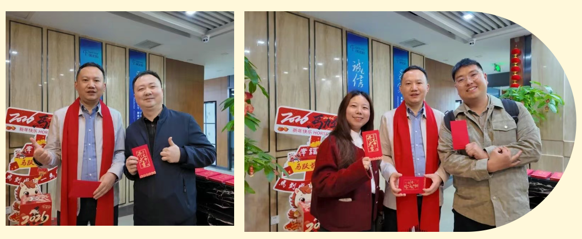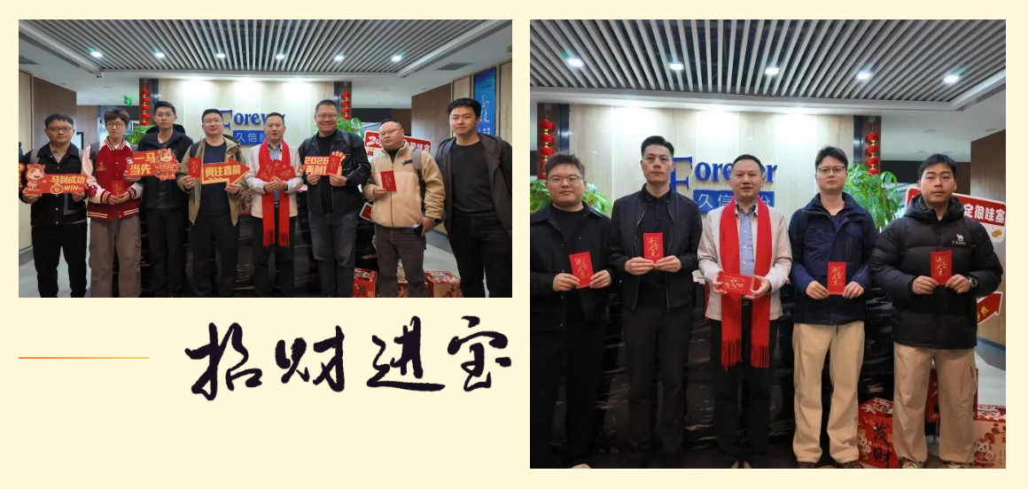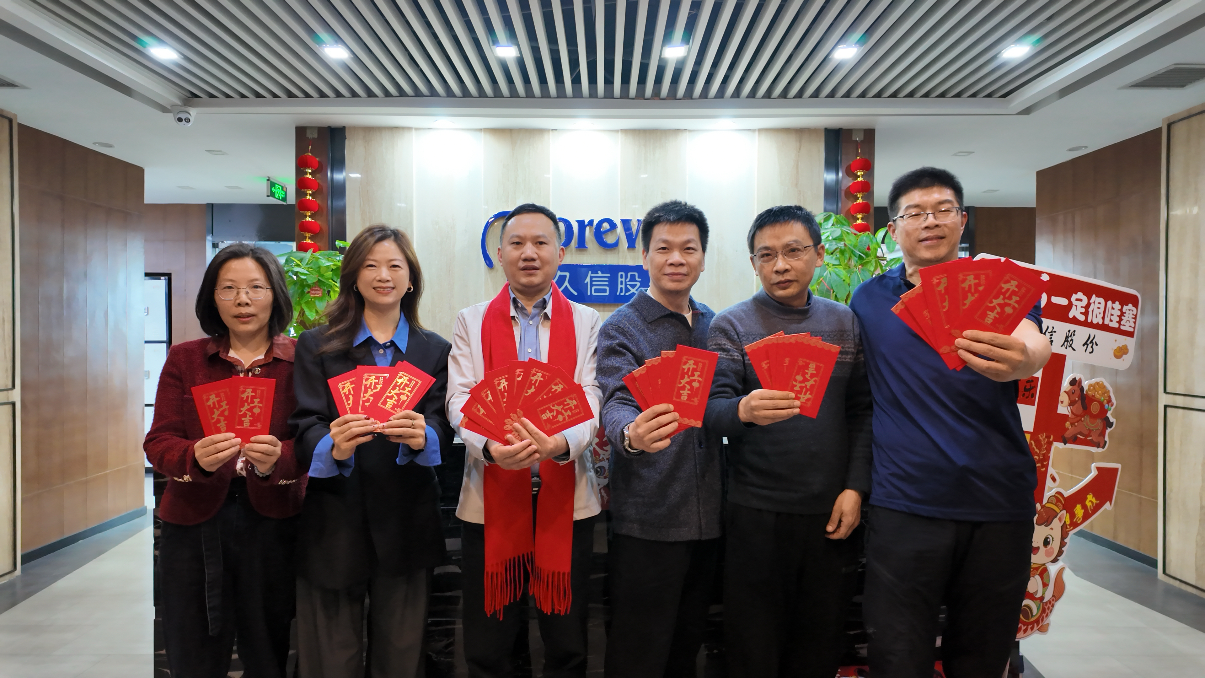 清晨,公司上下已是一派喜庆而昂扬的景象。久信股份董事长任朋飞先生一早便来到公司,为每一位返岗的久信人送上满载祝福的开工红包。
